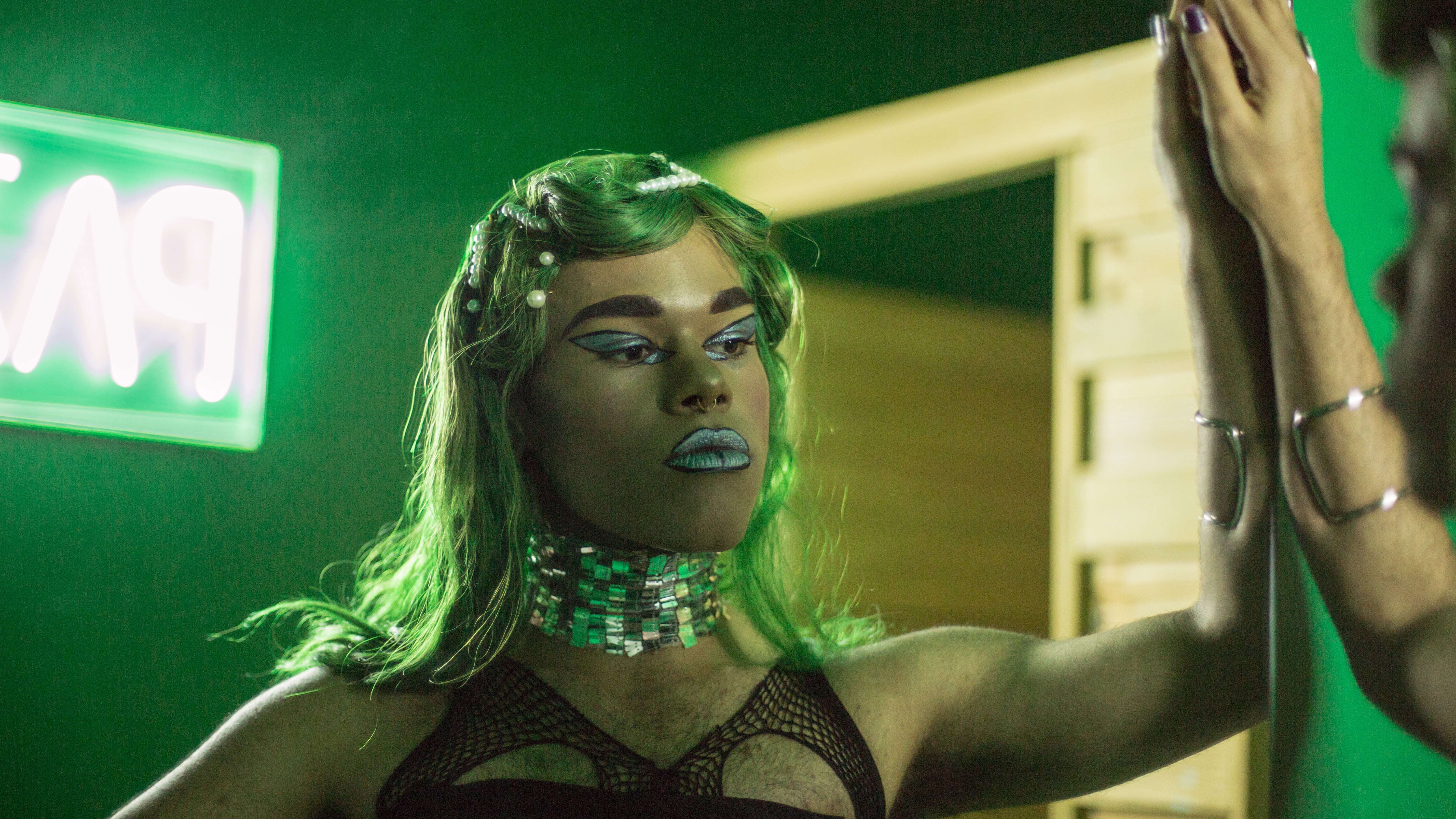 The work is inspired by the everyday horrors faced by black and brown, queer and femme bodies, where just leaving the home is fraught with danger. Angel imagines spitting and strutting in this face of this cruel world, with production that pops like glass being cracked under heels, of “moffie only, klopse troupe roaming through their neighborhood at 2am in the summer with their sharpened instruments ghostly parading the echo of their afternoon rehearsals.”