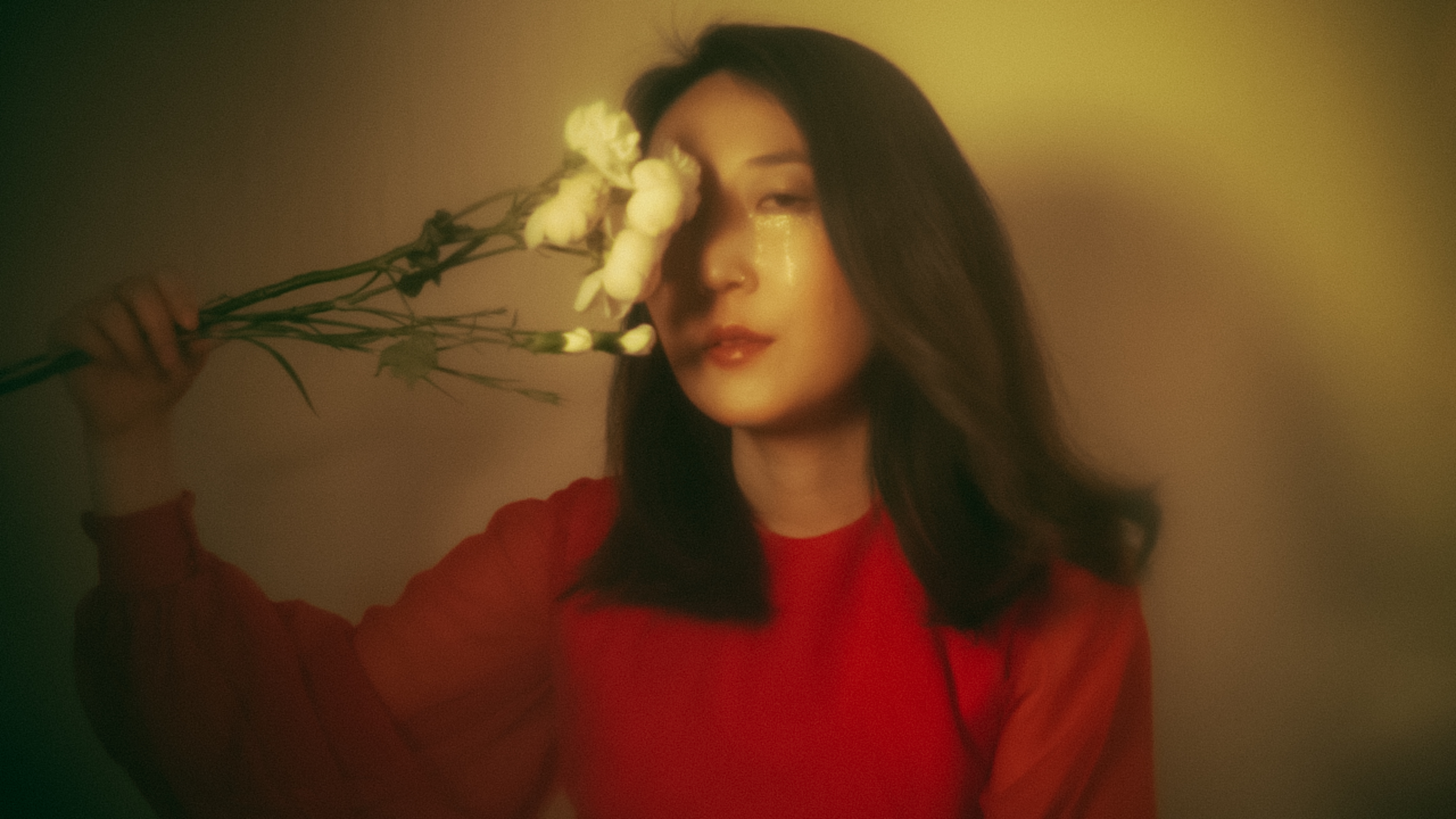 I met Hee Young in Seoul, and we both immediately struck a conversation about our art–and realized we had chemistry and wanted to create together. As two strong creative womxn we wanted to have an all womxn team to bring our nostalgic and dreamlike art forms together to create something quite spectacular. With my cinematic photography we started working together on photoshoots eventually we found ourselves drawn to a very decadent colour palette – one of gold, and crimson with sky blues to balance. We wanted to create a video that allowed the emotions in her song to manifest. As director I wanted each scene to be extremely well planned out – with organized yet unusual compositions – which contrasted with the emotive cinematic element as well. Hee Young also wanted us to include flashbacks to create a feeling of nostalgia – which works well with the moody richness of the other scenes.
