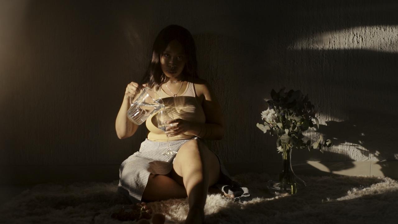 ‘Breathe Me’, is about a woman’s certainty in her own magic. Coming into the confidence to say what she wants and to share how she feels about herself. It’s soft but affirmative. Inviting, warm and in the visuals [we] use several different elements to highlight the softness and purity of [femme] energy. We use water, fruits, plants, flowers and materials like silk and lace [along with] very neutral colours in the styling of the video. We also used lighting to create a contrast between the scenes where we see her by herself — which are usually a little darker and deeper in colour — and the scenes we see her with a man, which are lighter and almost fantasy like. [This all] Strengthens the idea that she may be a magical experience. The video was meant to be simple and light and easy to digest, and should make you feel pretty inside.