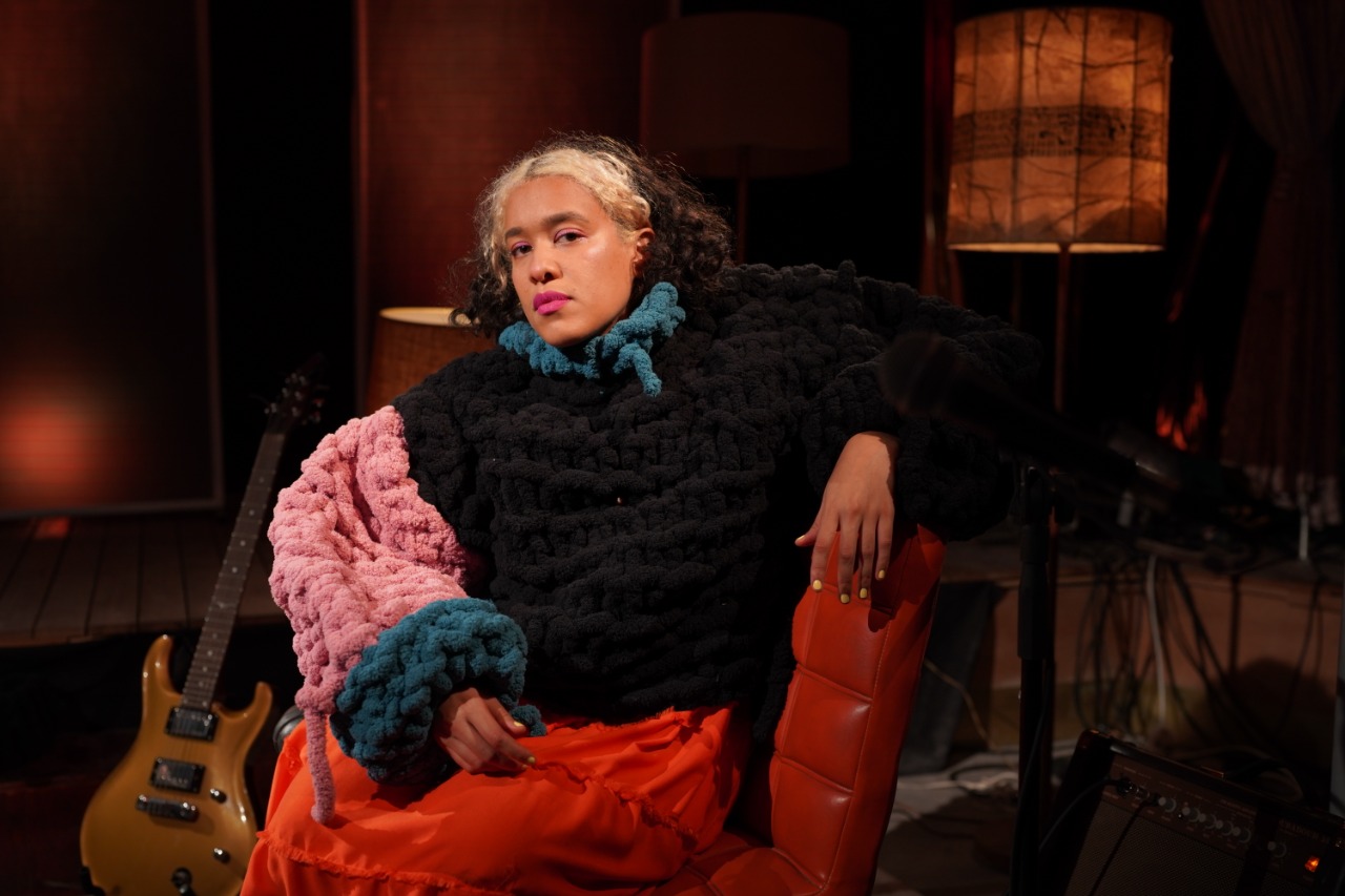 Inside an art-filled house in Observatory, dimly-lit using a lamp which has been placed on the stage floor, she steps out — wearing a burnt-orange two-piece, knotted hair, leather cowboy boots and colourful makeup, accessorised with chunky jewellery. The setting for the show was soft and intimate.