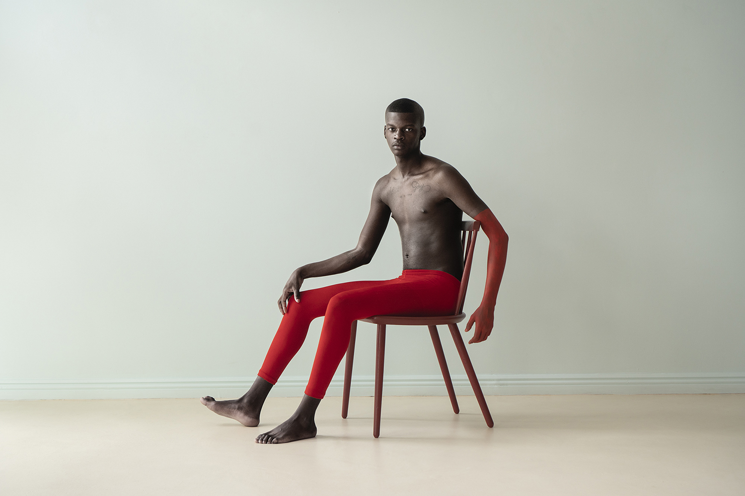 A single Black body in the shape of a man fills the space in front of a pale pink and pastel mint-green wall. Rigid and robotic in its form; ventriloquist-doll-like, the hands that would control it concealed in invisibility. Limbs of blue, red and green seemingly hovering in unattached dislocation from their (?) body — there is a sense of surrealist dis-ease captured and invoked by the images; snapshots of a body not quite its own and not quite human, even in all of its humanity. With the continuation of his Dangerous Bodies series, Nxedlana’s surrealism and critical abstractions of African decent, have taken on a character of animatedness as engaged with by Ngai Sianne in her essay Animatedness which appears in her book Ugly Feelings. Thus, both become more than aesthetic, thematic or conceptual strategies and seemingly work to perform the very double consciousness like conditions of occupying the space of Man when and while Black, as he shares with me: