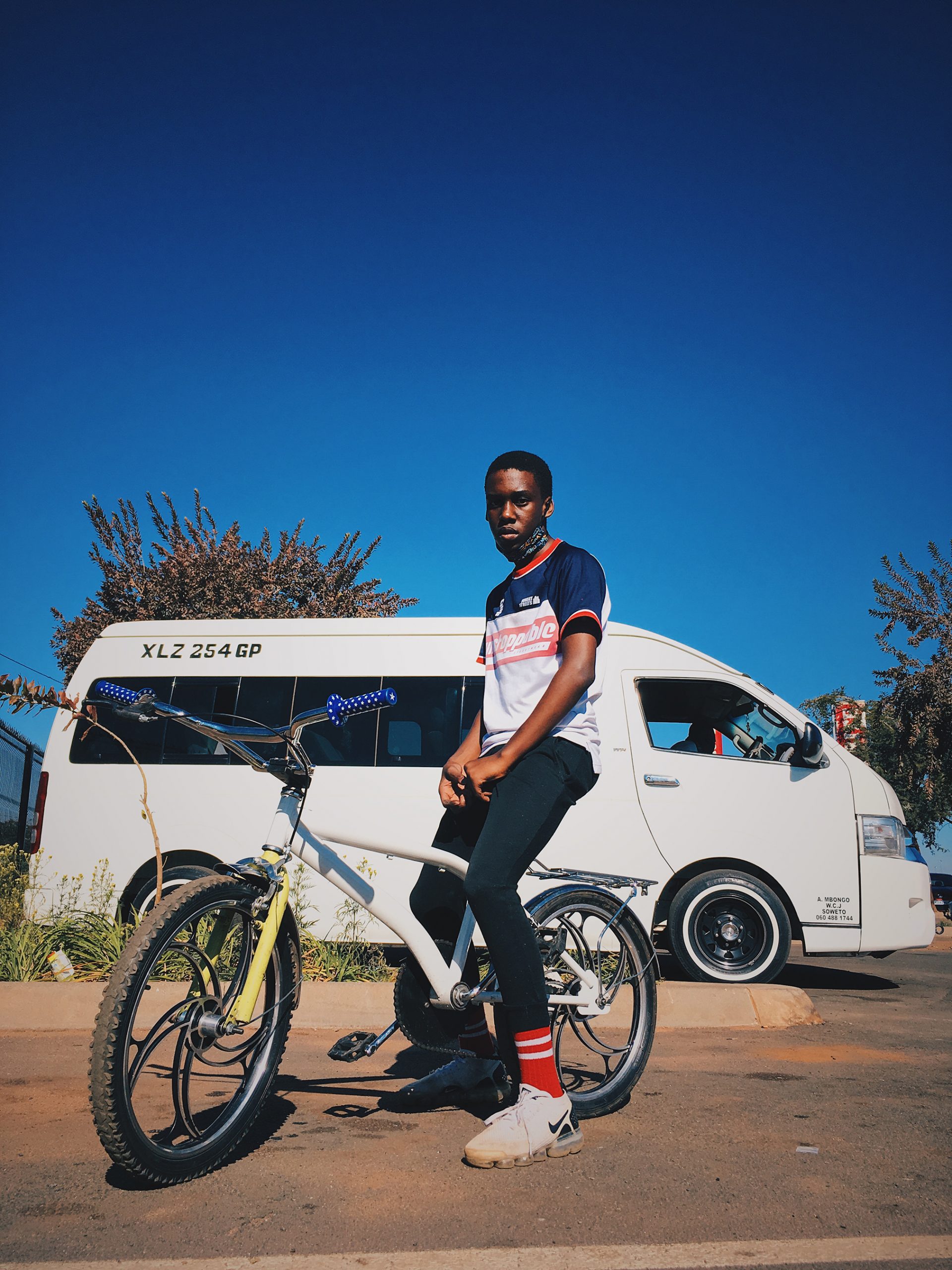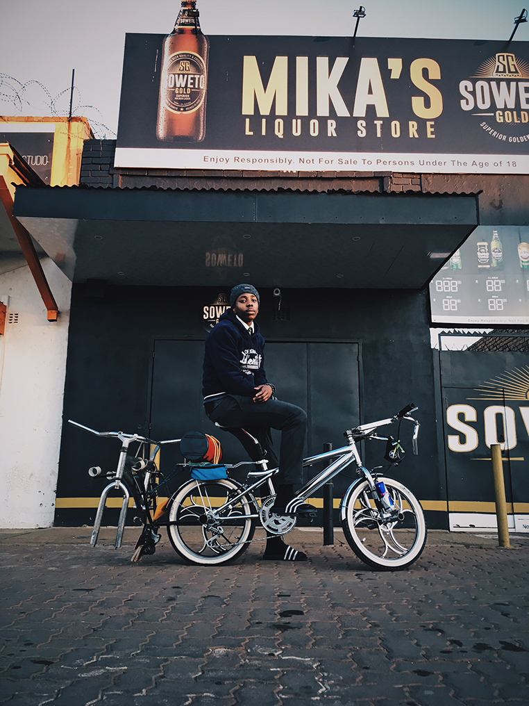 A group of kids from Soweto under the same name, Dynamite Diepkloof Dudes, have picked up this cultural baton, and what has manifested from that is a thriving BMX culture in the township. In 2020 we had the privilege of documenting the creativity that has emerged from his vibrant hybrid subculture in our Bubblegum production Soweto Riders. Dynamite Diepkloof Dudes — The Yanos Edition, is a photographic series by Irvin Irv Khumalo inspired by the group of riders and the TV programme they have named themselves after. “When we shot this series, we thought of a remake of the TV series, Dynamite Diepkloof Dudes, with Amapiano being the main soundtrack for the new TV programme. We imagined kids riding these cool bikes while fighting crime on the streets of Soweto. Now that would be mad dope”, expresses Khumalo speaking about the photo series. Shot by Irvin under the IRV Blames JAKE and Robotic Palm Trees creative agencies, the series is conceptualised around the riders who customise their bikes ingesting them with umswenko and creative details. “It’s a Soweto lifestyle, you get all types of bikes, VW, BMW, whatever! One is for long distance rides, one is for flexing and one is for spinning” — expressive individuality and freedom is at the very root of the subculture — much like with music, which is perhaps why the riding subculture is so entailed with Amapiano. These riders can be seen cruising the streets of Soweto and bumping the latest tunes. In a city now dominated by cars, it’s exciting and refreshing to witness these young riders repurposing the streets, through creativity and imagination in a scene that is a positive force in the community, while also reminding us of Johannesburg’s other wheeled histories.