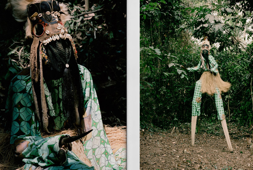 “These objects are part of a collective that they must not be separated from, or risk loosing their value. They are not the gods of this community but their prayers. They are integrated in a rigorous symbolic order, where every component has its place. They are ritual tools that I have animated by staging live models and in a way to desecrate them by giving them another meaning; an unfamiliar meaning in the Guinean context.”