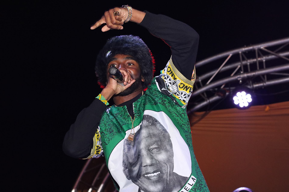 By seven, the venue is throbbing with some of the country’s biggest tunes. On the line-up for this evening’s ‘Victory March’ are DJs Sbu and Shimza, as well as hip-hop sensation Riky Rick, who took to the stage in a Madiba-emblazoned ANC shirt. The night also includes a surprise performance from 19-year old emcee, Nasty C, the young voice of hip-hop anthems Hell Naw and Juice Back.