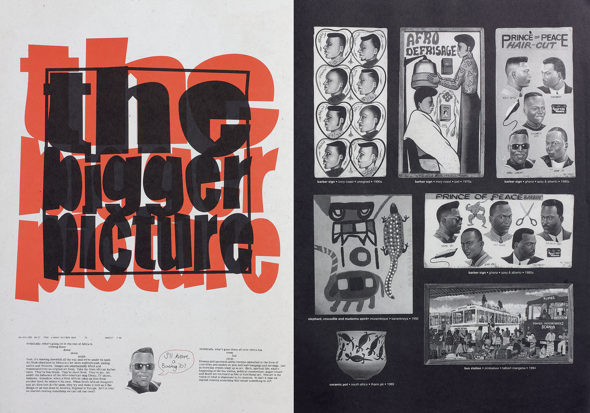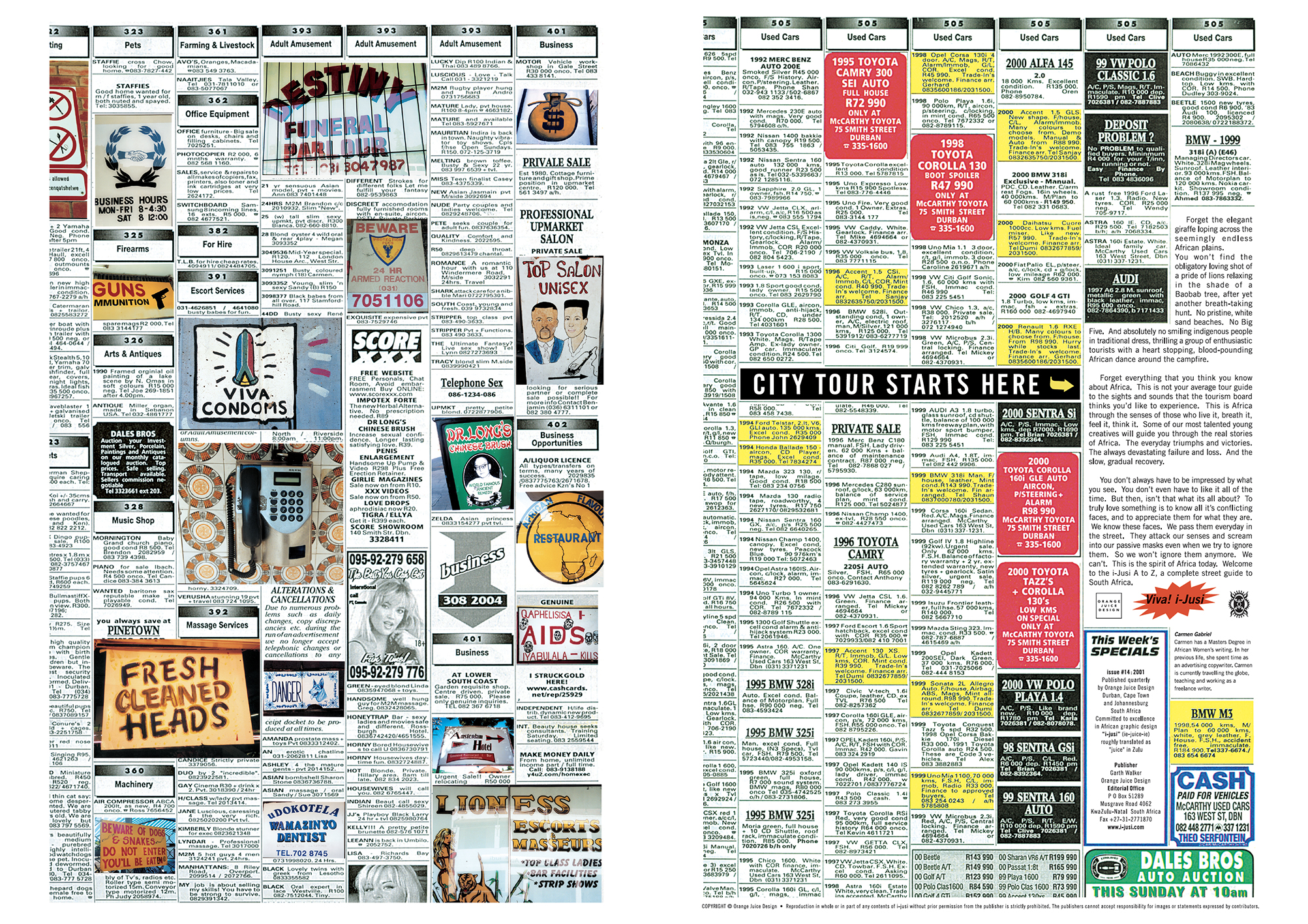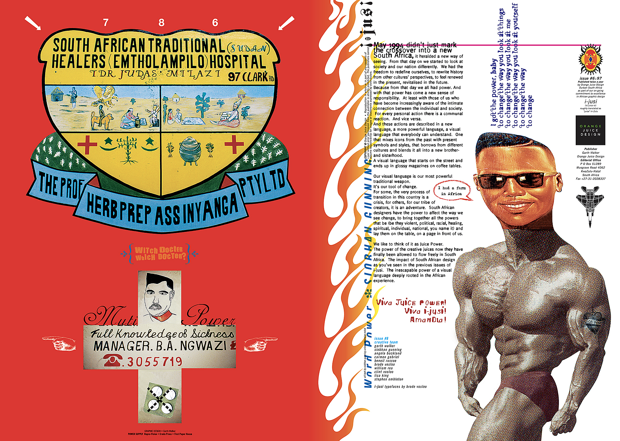 I started [iJusi] in 1994 as my interest was ‘what makes me South African, and what does that look like?’ – since the 80s, I had been documenting ‘street design’ as and when I found it. Back then, there wasn’t much around (outside of townships), which then all changed with the 90s with Mandela’s release. In Durban, there was a massive influx into the city (CBD mainly) and what was happening ‘on the streets’ was accessible… By 1994 when I designed the first issue, I had enough ‘stuff’ to fill at least two issues (which happened). The archive is now massive, and I’ve lost count of the number of images covering design, type, illustration, architecture, cemeteries, structures, vehicle livery and so on. The first issue was me really experimenting with the whole idea.